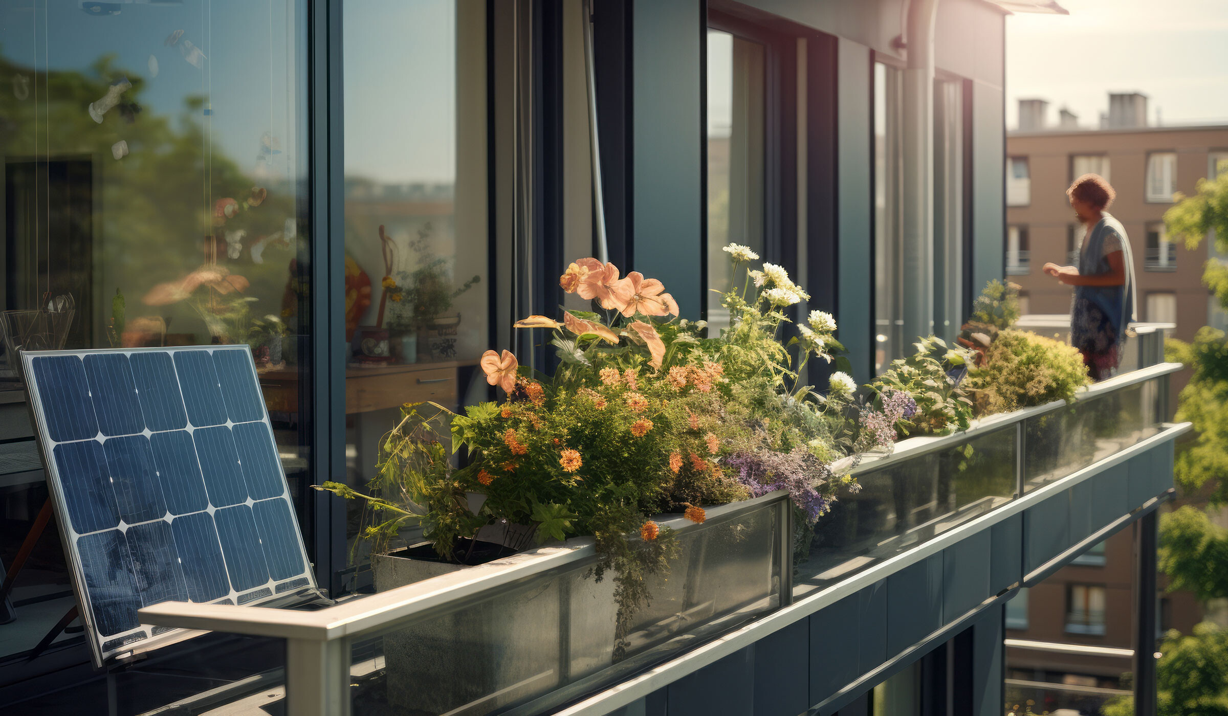 Ein Balkonkraftwerk ist eine kleine Solaranlage, die Sie auf dem Balkon oder einer Terasse installieren können. Es besteht aus Solarpaneelen, die Sonnenlicht in Strom umwandeln. Den erzeugten Strom können Sie direkt im Haushalt nutzen. Zum Beispiel für Lampen oder das Laden des Smartphones.